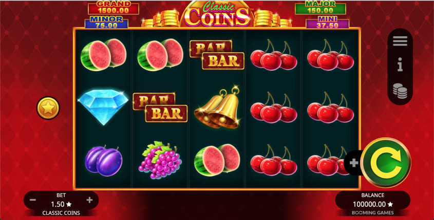 การออกแบบและธีม เกมสล็อต Classic Coins ค่าย Booming Games เข้าสู่ระบบ