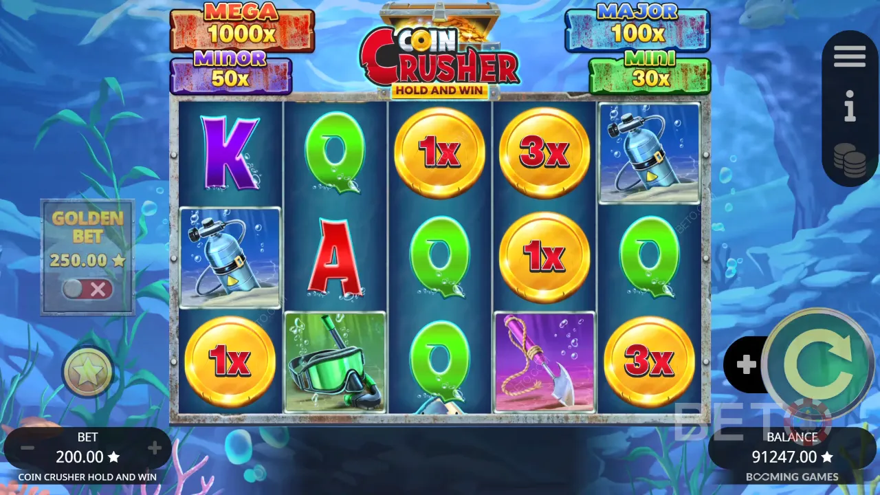 การออกแบบและธีม เกมสล็อต Coin Crusher ค่าย Booming Games เข้าสู่ระบบ