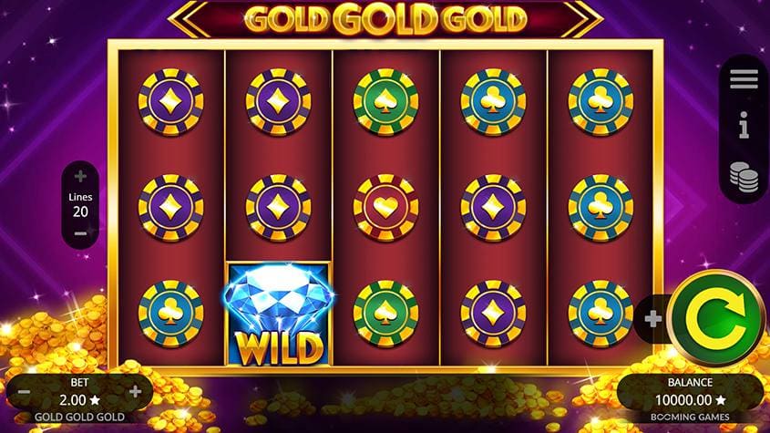 Gold Gold Gold มาในรูปแบบสล็อต 5 รีล 3 แถว พร้อมเพย์ไลน์จำนวน 25 เส้น ที่ถูกออกแบบมาให้ครอบคลุมทุกโอกาสในการชนะ โดยการชนะจะคิดจากซ้ายไปขวาเหมือนเกมสล็อตทั่วไป แต่สิ่งที่ทำให้เกมนี้โดดเด่นคือความหลากหลายของสัญลักษณ์ และอัตราการจ่ายที่คุ้มค่าเกินราคา