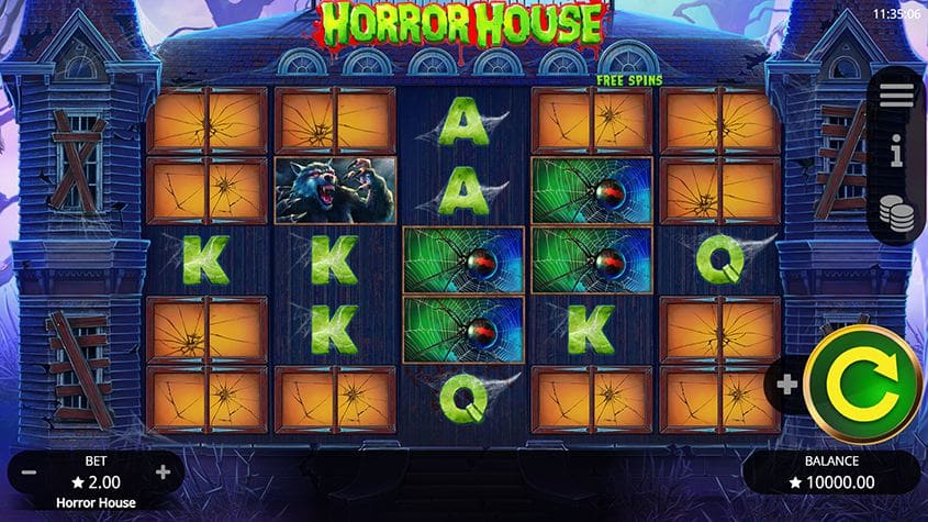Horror House ไม่ได้แค่หยิบธีมบ้านผีสิงมาใส่มั่วๆ แต่ใส่ใจกับทุกจังหวะของความน่ากลัวและความหลอนให้ชวนขนลุกแบบตั้งใจ ภาพพื้นหลังคือคฤหาสน์เก่าๆ ที่ดูเหมือนจะพังไปครึ่งหลังแล้ว หน้าต่างแตกร้าว ประตูเปิดแง้ม พร้อมเงาลึกลับที่เคลื่อนไหวตามจังหวะเสียง มีแสงจากเทียนวูบไหวเบาๆ ที่มุมจอ ทำให้รู้สึกเหมือนมีบางอย่างกำลังจ้องคุณอยู่จริงๆ