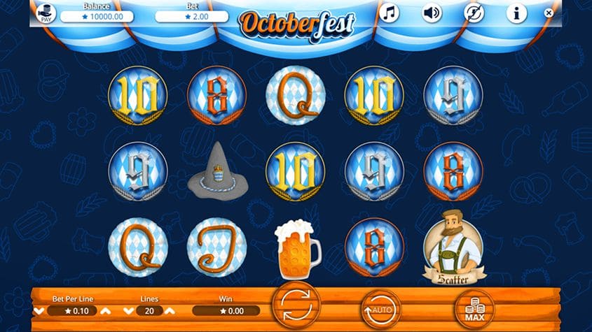 Octoberfest มาพร้อมกับโครงสร้างวงล้อ 5×3 และเพย์ไลน์ทั้งหมด 20 เส้น ซึ่งถือว่าอยู่ในระดับกลางๆ ไม่มากหรือน้อยเกินไป เส้นเพย์ไลน์เหล่านี้จะนับจากซ้ายไปขวา และไม่สามารถปรับลดหรือเพิ่มได้ ทำให้ผู้เล่นไม่ต้องกังวลเรื่องการตั้งค่า แค่ปรับเบทตามที่ต้องการ แล้วสนุกไปกับการลุ้นสัญลักษณ์ต่างๆ ที่หมุนเข้ามาในแต่ละรอบ สำหรับใครที่ต้องการทดลองเล่นก่อนก็สามารถเข้าสู่โหมดเดโมได้ผ่านทางเข้าเว็บตรงของเรา
