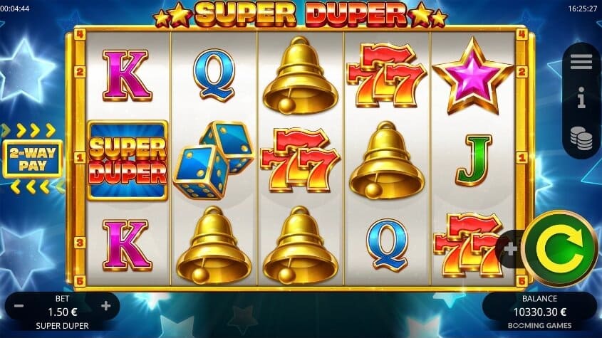 เกมนี้มาพร้อมระบบ 3 รีล 3 แถว ซึ่งอาจดูคล้ายตู้สล็อตยุคเก่า แต่ที่น่าสนใจคือเพย์ไลน์ของ Super Duper ถูกออกแบบให้ยืดหยุ่น มีทั้งหมด 5 เส้นที่ครอบคลุมแนวนอนและแนวทแยง รวมถึงแนวข้ามกลาง ทำให้การชนะไม่ได้จำกัดแค่เรียงซ้ายไปขวาแบบเกมสมัยใหม่ แต่เปิดโอกาสให้ผู้เล่นชนะได้หลากหลายทิศทางมากขึ้นในพื้นที่เล็กๆ
