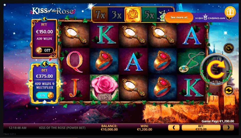 Kiss of the Rose มี 5 วงล้อและมี 243 วิธีในการชนะ แม้ว่าเกมสล็อตออนไลน์นี้จะมีสัญลักษณ์ปกติเช่นไพ่ แต่ก็มีสัญลักษณ์ที่เกี่ยวข้องกับธีม เช่น แหวนที่มีอัญมณีสีแดง นกฮูก โลโก้ของเกม กระจก จี้ และอื่นๆ เมื่อผู้เล่นตีสัญลักษณ์ปราสาทสามอัน พวกเขาจะเปิดฟีเจอร์การเลือกโบนัส ดังนั้น จึงขึ้นอยู่กับผู้เล่นที่จะเลือกการผสมผสานระหว่างฟรีสปินและตัวคูณเพื่อชัยชนะ คุณสามารถเลือกฟรีสปินและตัวคูณได้สูงสุด 12 ตัว ซึ่งสามารถคูณชัยชนะของคุณได้ 9, 15 หรือ 24 เท่า