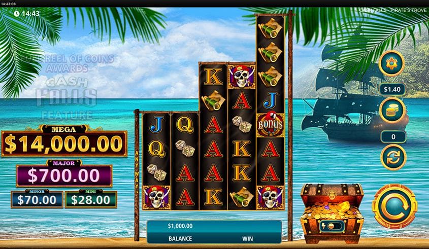 ฟรีสปินและโบนัส ในเกม Cash Falls Pirate’s Trove