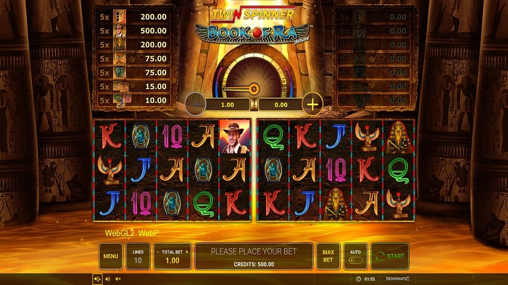 การออกแบบและธีม เกมสล็อต Twin Spinner Book of Ra ค่าย Novomatic Gaming เข้าสู่ระบบ
