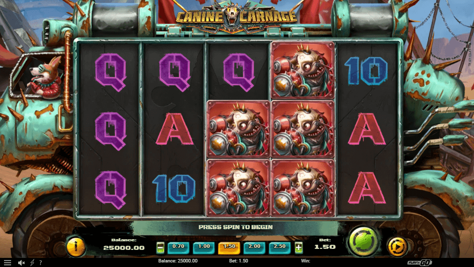 Canine Carnage จากผู้ให้บริการซอฟต์แวร์สวีเดน Play’N GO พิสูจน์ให้เห็นว่าสล็อตในอนาคตยังคงเป็นเกมยอดนิยม Canine Carnage มีเรื่องราวเกิดขึ้นในโลกที่เหล่าสุนัขเข้ามายึดครองและล่องเรือไปรอบ ๆ ในยานพาหนะที่อัดแน่นไปด้วยซุปในขณะที่ฟังเทคโนที่เต้นรัว ฟังดูคล้ายกับแนวคิด Nitropolis ของ ELK Studios นิดหน่อย (หรือมาก) ใช่ไหม? ใช่แล้ว เราได้รับความประทับใจนั้นเช่นกัน พร้อมด้วยข้อมูลอ้างอิงอื่นๆ มากมายเช่นกัน นั่นอาจเป็นปัญหามากกว่านี้หาก Canine Carnage ที่เหลือไม่ได้รับการออกแบบมาอย่างดี ตามที่กล่าวมา Canine Carnage มีความบันเทิงที่น่าตื่นเต้นมากมายที่จะนำเสนอนักพนันที่เหมาะสม มาตรวจสอบกัน
