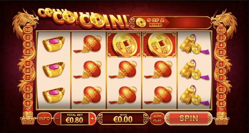 Coin Coin Coin คือสล็อตออนไลน์จาก Playtech มีห้าวงล้อ สามแถว และ 10 ช่องจ่ายเงิน จากข้อมูลของ Playtech RTP อยู่ที่ 96.03 เปอร์เซ็นต์ และระดับความแปรปรวนอยู่ในระดับสูง มันเป็นสล็อตธรรมดาที่เล่นบน SLOTXO มีไอคอนจีนมาแทนที่ผลไม้ มันมีฟีเจอร์Wilds แต่ไม่มีตัวคูณ และไม่มีฟรีสปินหรือscatters รูปแบบการเล่นค่อนข้างธรรมดา นักพัฒนาได้ตัดสินใจอย่างชัดเจนที่จะทำให้มันเพรียวบางลง แต่ในขณะที่เกม สล็อต XO อื่น ๆ แบบดั้งเดิมพบว่าคุณสมบัติอื่น ๆ ที่จะชดเชย ที่นี่มีน้อยมากที่จะชดเชยการขาดscatters ฟรีสปินเกมโบนัสประเภทใด ๆ หรือคุณสมบัติการพนัน สิ่งเดียวที่แตกต่างจากการจัดตารางการจ่ายเงินที่เข้มงวดคือความสามารถของระฆังทองคำในการให้รางวัลชนะโดยมีเพียงสองไอคอนแทนที่จะเป็นสามไอคอน มันไม่เพียงพอจริงๆ