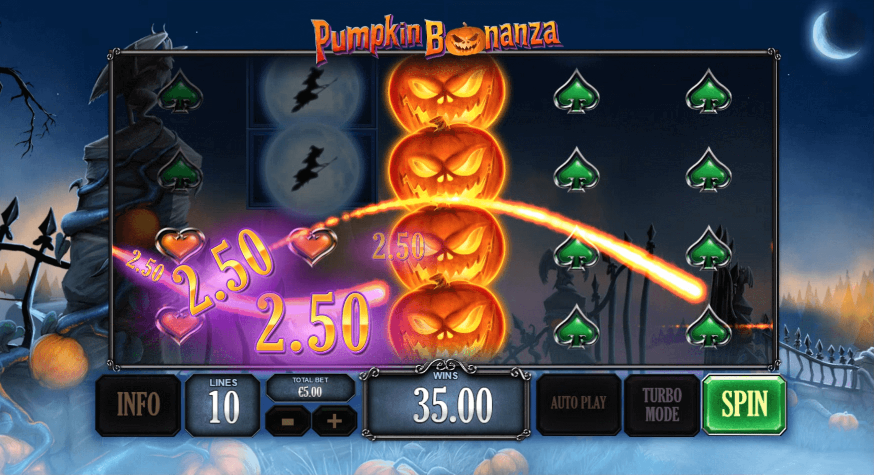 มี 10 ช่องจ่ายเงินในเกมสล็อตออนไลน์ Pumpkin Bonanza ของ Playtech แม้ว่าสล็อตส่วนใหญ่จาก Playtech ในปัจจุบันจะมีช่องจ่ายเงินมากกว่า แต่เกมนี้ยังคงเปิดโอกาสให้ผู้เล่น สล็อต 168 ได้รับรางวัลเงินสดที่น่าทึ่งในขณะที่หมุนวงล้อ ผู้เล่นสามารถเดิมพันได้ทุกที่ตั้งแต่ 10p ถึง 500 ปอนด์ต่อการหมุน หากต้องการชนะชุดสัญลักษณ์ในขณะที่เล่น Pumpkin Bonanza คุณเพียงแค่ต้องวางสัญลักษณ์ที่ตรงกันสามตัวขึ้นไปบนเพย์ไลน์เดียวกัน รางวัลสูงสุดที่มีให้นั้นมาจากสัญลักษณ์รูปเงาดำของแม่มด ซึ่งจะจ่ายรางวัลมูลค่า 500 เท่าของเงินเดิมพันของคุณ