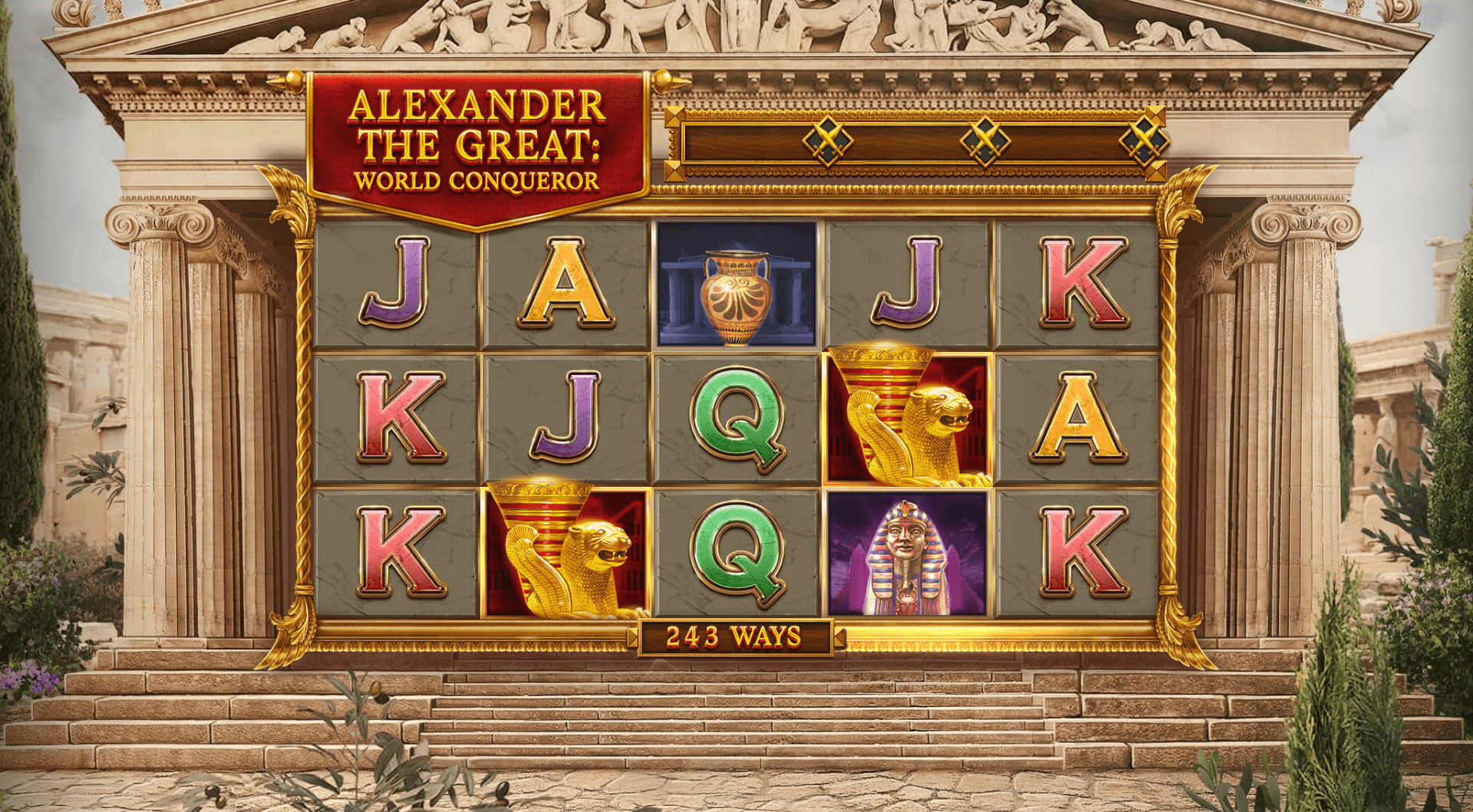 6.Alexander The Great World Conqueror คือสล็อตออนไลน์ที่มี 5 วงล้อ 3 แถว แทนที่จะใช้เพย์ไลน์แบบดั้งเดิม เกมนี้ใช้ระบบ 243 วิธีในการชนะ เดิมพันสามารถอยู่ระหว่าง 0.20 ยูโร ถึง 10 ยูโร และการจ่ายเงินสูงสุดที่เป็นไปได้คือ 10,467x ของเงินเดิมพัน เกมดังกล่าวมี 4 ด่าน โดยแต่ละด่านจะมีชุดวงล้อและ/หรือการเปลี่ยนแปลงกฎที่แตกต่างกัน คุณสมบัติโบนัส ได้แก่ สัญลักษณ์ฟรีสปิน, Wilds และScatters