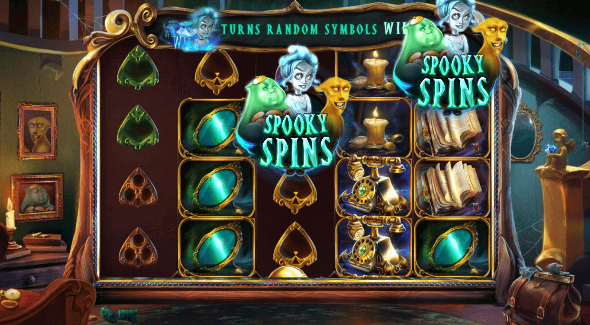 สิ่งเหล่านี้ปรากฏในรูปแบบของ Betty, Boris และ Boo เอง และพวกเขาทั้งหมดสามารถปรากฏขึ้นพร้อมกันในการหมุนครั้งเดียวกัน การปรากฏตัวของ Betty หมายถึง Betty Wilds; เธอจะเปลี่ยนสัญลักษณ์ปกติทั้งหมดให้เป็นWildsที่ถูกล็อคตลอดระยะเวลาของฟีเจอร์นี้ หากบอริสปรากฏขึ้น เขาจะใช้ค่าตัวคูณแบบสุ่มกับการชนะทั้งหมดสำหรับฟีเจอร์ Spooky Spins ที่เหลือ