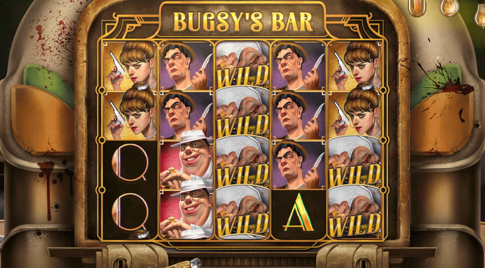 ช่วงทศวรรษที่ 1930 เป็นช่วงที่รู้จักกันในชื่อ “ยุคศัตรูสาธารณะ” เมื่อ FBI เริ่มเก็บรายชื่อพวกอันธพาลและอาชญากรที่ต้องการตัว Bugsy’s Bar อาจดูเย้ายวนใจในยุคอาชญากรรมในยุคก่อนๆ แต่ก็ยังแสดงให้เห็นแง่มุมที่มีเสน่ห์น้อยกว่าด้วยเช่นกัน ส่วนที่เผ็ดน้อยกว่าคือรูกระสุนและเลือดที่กระเด็นไปทั่วตู้เพลง ที่อยู่ในตารางของเกม Scattersไปทั่วส่วนที่เหลือของหน้าจอคืออุปกรณ์สำหรับการดื่มแบบคลาสสิก เช่น ขวดเหล้า แก้วเหล้า ซิการ์ที่คุกรุ่น โคมไฟที่ใกล้ชิด และสุภาพบุรุษที่คุกรุ่นไม่แพ้กัน นั่งอย่างลึกลับนั่งอยู่ด้านหนึ่งของห้องระหว่างการหมุนฟรี สล็อต เว็บตรง Bugsy’s Bar ปิดท้ายด้วยเพลงประกอบที่เล่นผ่านเกมหลักก่อนที่จะเข้าสู่โหมดสวิงเมื่อฟรีสปินทริกเกอร์ ค่อนข้างหนาแน่นในบรรยากาศ พิจารณาทุกสิ่งโดยไม่ได้ทำอะไรเป็นพิเศษหรือไม่ซ้ำกับธีมเลย