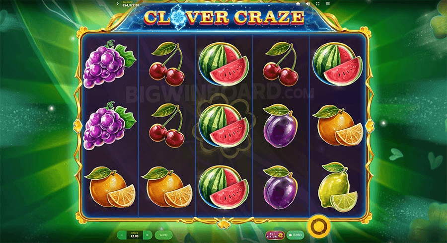 ด้านสัญลักษณ์ Clover Craze มีเชอร์รี่ พลัม ส้ม มะนาว แตงโม องุ่น ระฆัง และเซเว่น สัญลักษณ์ผลไม้สี่ตัวแรกในรายการจะให้รางวัล 5 เท่าสำหรับชุดสัญลักษณ์ที่ชนะ 5 แบบ ในขณะที่สี่รายการที่เหลือจะจ่าย 12.5 ถึง 150 เท่าของการเดิมพันสำหรับคอมโบชนะของสัญลักษณ์ที่ตรงกัน 5 อัน จากส่วนการซื้อคุณสมบัติผู้เล่น สล็อต 888 สามารถซื้อสปินลงจอดเพื่อรับ Green Clover ที่รับประกันด้วยเงินเดิมพัน 5 เท่า, การหมุนลงจอดเพื่อรับประกัน Golden Clover ตรงกลางตารางด้วยเงินเดิมพัน 25 เท่า, การหมุนลงสู่คุณสมบัติ Golden Clover x3 ที่รับประกันในราคา 50x การเดิมพันหรือการหมุนที่รับประกันคุณสมบัติ Golden Clover x7 สำหรับการเดิมพัน 500x
