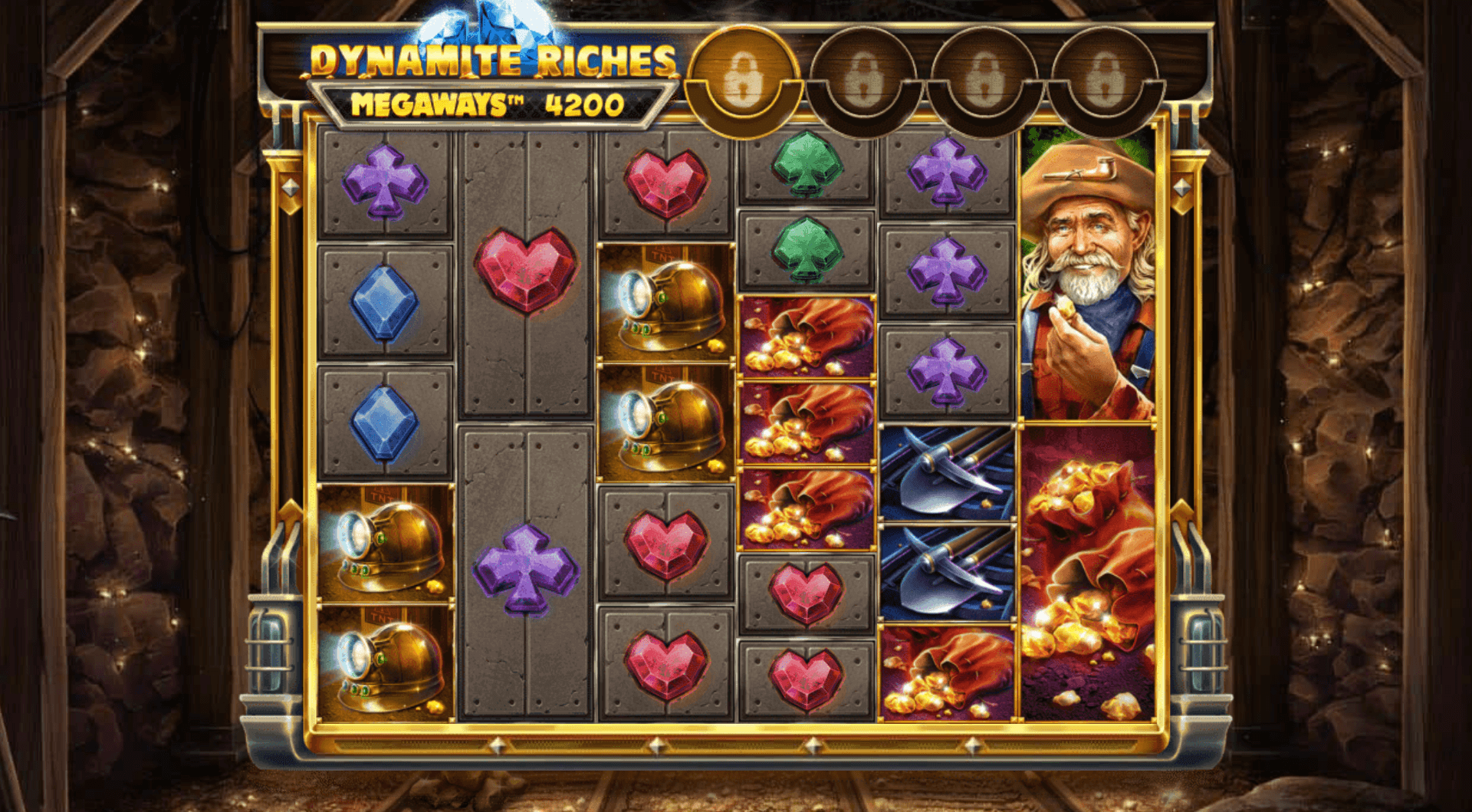 สิ่งหนึ่งที่ Dynamite Riches MegaWays™ มีไม่น้อยก็คือฟีเจอร์โบนัส มีWildsสามตัวแยกกันสำหรับการเริ่มต้น ซึ่งแต่ละสัญลักษณ์จะจ่ายรางวัลเงินสดเมื่อเชื่อมโยงห้าชนิดบนเพย์ไลน์ ไดนาไมต์Wilds โกลด์บาร์Wilds และไดมอนด์Wilds สามารถใช้แทนสัญลักษณ์อื่นๆ เพื่อสร้างชุดสัญลักษณ์ที่ชนะได้
