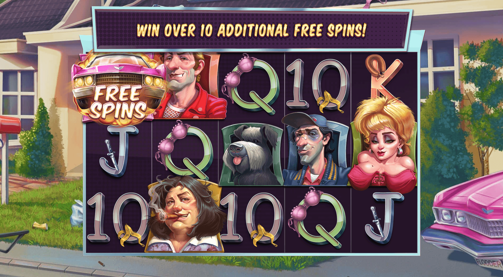 รถสีชมพูฟรีสปินสามารถปรากฏได้ทุกที่บนวงล้อ การได้รับสัญลักษณ์อย่างน้อย 3 อันในการหมุนครั้งเดียวจะทำให้เกมเริ่มทำงานและให้รางวัล 10 สปิน และ 3 การเลือกในรอบตัวเลือกการหมุนฟรี โดยแต่ละสัญลักษณ์การหมุนฟรีเพิ่มเติมจะมอบรางวัลให้อีก 1 ครั้ง