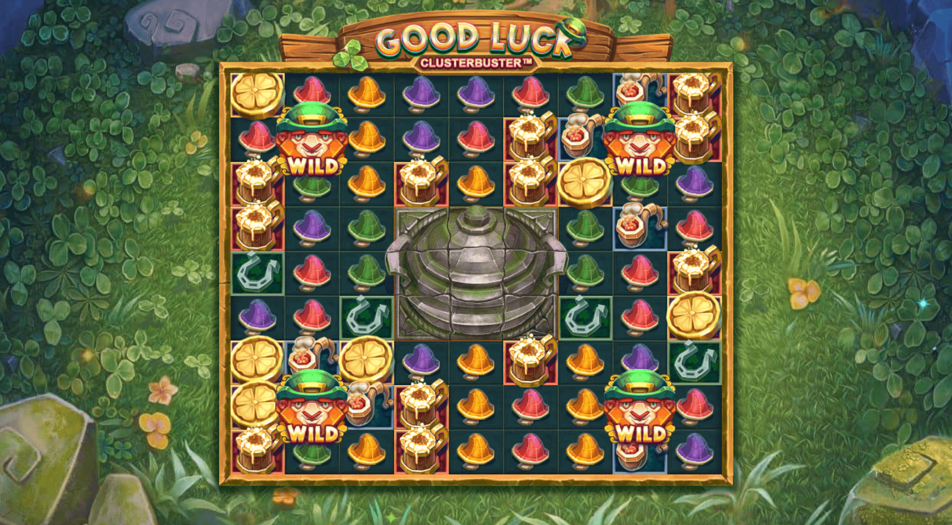 ตรงกลางตาราง คุณจะสังเกตเห็นหม้อที่มีหินปกคลุมอยู่ ทุกครั้งที่คุณปลดล็อกหม้อทองได้ คุณจะเรียกใช้ฟีเจอร์ฟรีสปินที่จะให้รางวัล 5 สปิน โดยที่ Leprechaun Wilds จะเคลื่อนที่ไปทุก ๆ การหมุนและได้รับตัวคูณเพิ่มขึ้นทุกครั้งที่พวกเขามีส่วนร่วมในกลุ่มที่ชนะ บล็อกหินหม้อทองจะถูกลบออกทุกครั้งที่มีการสร้างคลัสเตอร์ที่ชนะติดกับแผ่นกระเบื้อง