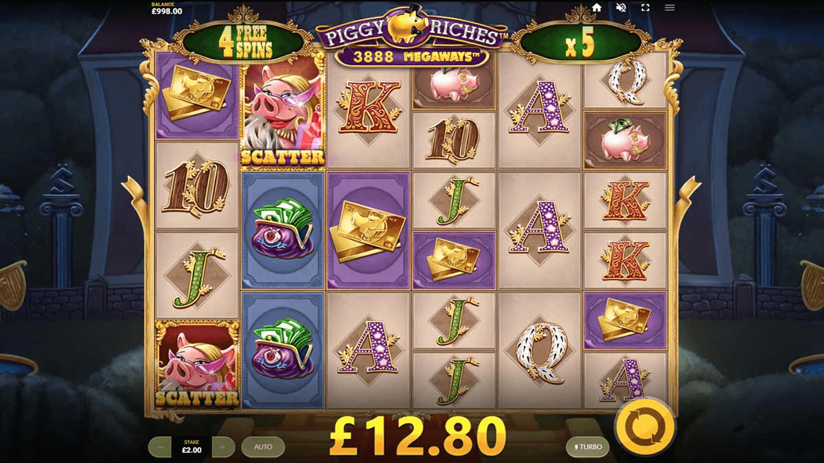 Piggy Riches™ Megaways™เป็นสล็อตออนไลน์ที่สร้างโดย Red Tiger Gaming ในนามของ NetEnt; มันเป็นการรีเมค Piggy Riches ดั้งเดิมของ NetEnt โดยมีกลไก Megaways ของ Big Time Gaming ทำงานอยู่ คุณสมบัติต่างๆ ได้แก่ วงล้อทวีคูณแบบไวด์และฟรีสปินพร้อมตัวคูณที่เพิ่มขึ้น การเล่นเกมนี้อย่างเต็มกำลังล่วงหน้าจะทำให้มี 117,649 วิธีในการชนะที่แตกต่างกัน ระบบวงล้อเรียงซ้อนจะเคลียร์การชนะออกจากหน้าจอ และแทนที่เฉพาะสัญลักษณ์ที่ชนะเท่านั้น เพื่อสร้างโอกาสให้ผู้เล่นได้รับชัยชนะมากยิ่งขึ้น การลงสัญลักษณ์ที่ตรงกันตั้งแต่สามสัญลักษณ์ขึ้นไปบนวงล้อที่อยู่ติดกันจะทำให้คุณได้รับชัยชนะ สัญลักษณ์ที่มีกำไรมากที่สุดของเกมคือสัญลักษณ์ที่แสดงถึงถุงเงินสดและอัญมณี อันนี้จ่ายรางวัลมูลค่า 20 เท่าของเงินเดิมพันของผู้เล่น สล็อต 888 สำหรับชุดค่าผสมที่ชนะหกแบบ