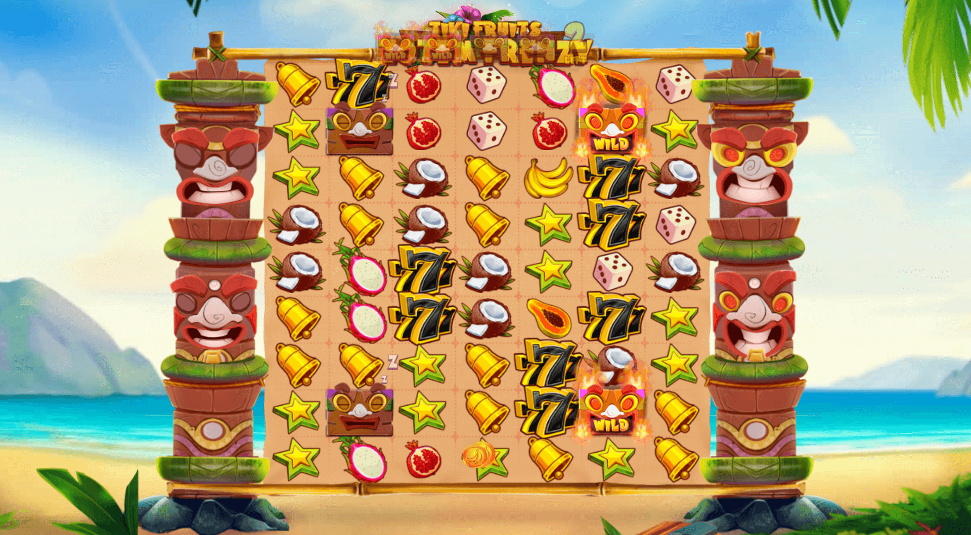 เกมดังกล่าวมีมาสก์ Tiki 4 อันที่ถูกล็อคไว้ที่ตำแหน่งเดียวกันบนตารางตลอดเวลา หากคุณชนะถัดจากหนึ่งในนั้น หน้ากากนั้นจะตื่นขึ้นและกลายเป็นWilds Wilds เหล่านี้สามารถเข้าย่อยเพื่อรับสัญลักษณ์การจ่ายทั้งหมดเพื่อช่วยสร้างคลัสเตอร์ที่ชนะ หากคุณปลุกทั้ง 4 คนได้ คุณจะเริ่ม Tiki Spins