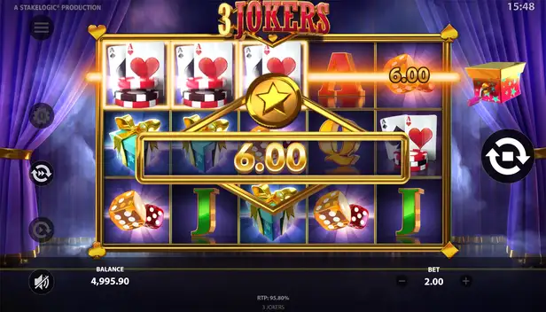 การออกแบบและธีม เกมสล็อต 3 Jokers ค่าย StakeLogic Gaming เข้าสู่ระบบ