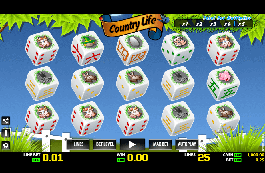 มีWildsใน Country Life ซึ่งก็คือกระต่าย กระต่ายตัวนี้จะแทนที่ตัวเองด้วยสัญลักษณ์อื่นเพื่อให้ชุดสัญลักษณ์ที่ชนะสมบูรณ์ หนูเป็นสัญลักษณ์scattersในเกมนี้ เพื่อที่จะชนะการหมุนฟรี คุณจะต้องจับแมวสามตัวขึ้นไป แมวเหล่านี้จะตอบแทนคุณด้วยการหมุนฟรี 12 ครั้งและตัวคูณ 2 เท่าสำหรับการชนะทั้งหมดของคุณระหว่างการหมุนเหล่านี้ สำหรับสล็อตที่ผ่อนคลาย Country Life Dice เสนอโบนัสที่น่าตื่นเต้นมากมายอย่างแน่นอน