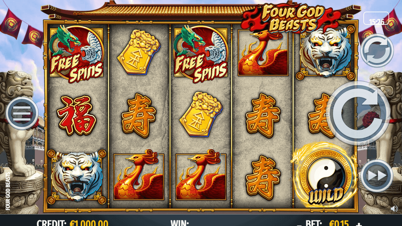 Four God Beasts เป็นหนึ่งในเกมสล็อตแมชชีนคลาสสิกที่มีรูปแบบตาราง 5×3 พร้อมช่องจ่ายเงิน 15 ช่องและห้าวงล้อ และการรวมกันที่ชนะจะทำโดยการค้นหาสัญลักษณ์สามถึงห้าตัวติดต่อกันจากขวาไปซ้าย