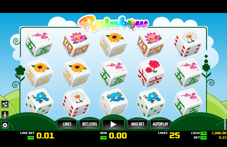 เกมเล็กๆ ที่ประณีตนี้มีความเป็นเลิศในคุณสมบัติการเล่นเกมเพิ่มเติม มีฟีเจอร์เล่นอัตโนมัติมาตรฐาน แต่ Rainbow Dice ยังให้คุณกด Fast Play เพื่อเกมที่รวดเร็วและน่าตื่นเต้นยิ่งขึ้น ในขณะเดียวกัน Spin Stop ช่วยให้คุณสามารถหยุดวงล้อเมื่อใดก็ตามที่คุณคิดว่าอาจมีการรวมกันที่ชนะบนวงล้อ สล็อต Rainbow Dice คือสล็อตลูกเต๋าวงล้อเสมือนจริงที่มีไลน์เดิมพันหลายแถวและมีสัญลักษณ์ฟังก์ชั่นพิเศษ เป้าหมายของเกมคือการได้รับสัญลักษณ์ที่ชนะอย่างน้อยหนึ่งชุดตามที่อธิบายไว้ในตารางการจ่ายเงิน เงินรางวัลจะแตกต่างกันไปตามจำนวนไลน์เดิมพันที่เลือกและจำนวนเงินเดิมพัน จ่ายเฉพาะการชนะสูงสุดต่อไลน์เดิมพันเท่านั้น เส้นเดิมพันชนะการจ่ายเมื่อติดต่อกันจากซ้ายสุดไปขวา เงินรางวัลอื่นๆ ในไลน์เดิมพันที่แตกต่างกันจะถูกเพิ่มเข้าไป