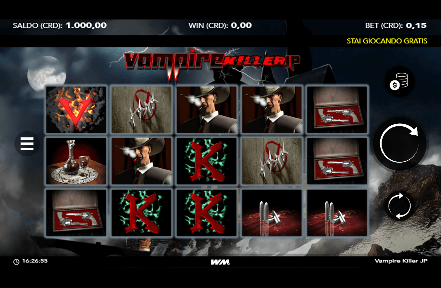 Vampire Killer JP นำเสนอเกมแฟนตาซีที่ทำให้เลือดแข็งตัว 5 วงล้อซึ่งมีพื้นฐานมาจากเรื่องราวยอดนิยมของเคานต์แดร็กคูล่า การเข้าสู่เกมเป็นเรื่องง่าย เนื่องจากปุ่มขนาดใหญ่ที่ด้านล่างของหน้าจอจะแสดงวิธีการปรับไลน์เริ่มต้นและการตั้งค่าการเดิมพันอย่างชัดเจน หรือเพิ่มความเร็วด้วยตัวเลือกทั้งแบบรวดเร็วและเล่นอัตโนมัติเนื่องจากกระเป๋าเงินเริ่มต้นนั้นใจกว้างมาก จึงไม่มีเหตุผลที่จะจำกัดตัวเองให้เล่น 1 ไลน์ต่อการหมุน เกมดังกล่าวค่อนข้างตรงไปตรงมา เนื่องจากไม่มีสิ่งพิเศษ เช่น แจ็คพอตแบบโปรเกรสซีฟหรือเกมโบนัสให้รับชม เพียงตัดสินใจเลือกเงินเดิมพันของคุณและกดลูกศรขนาดใหญ่ หรือตั้งค่าเป็นหมุนอัตโนมัติ และดูเงินรางวัลของคุณที่เพิ่มขึ้น
