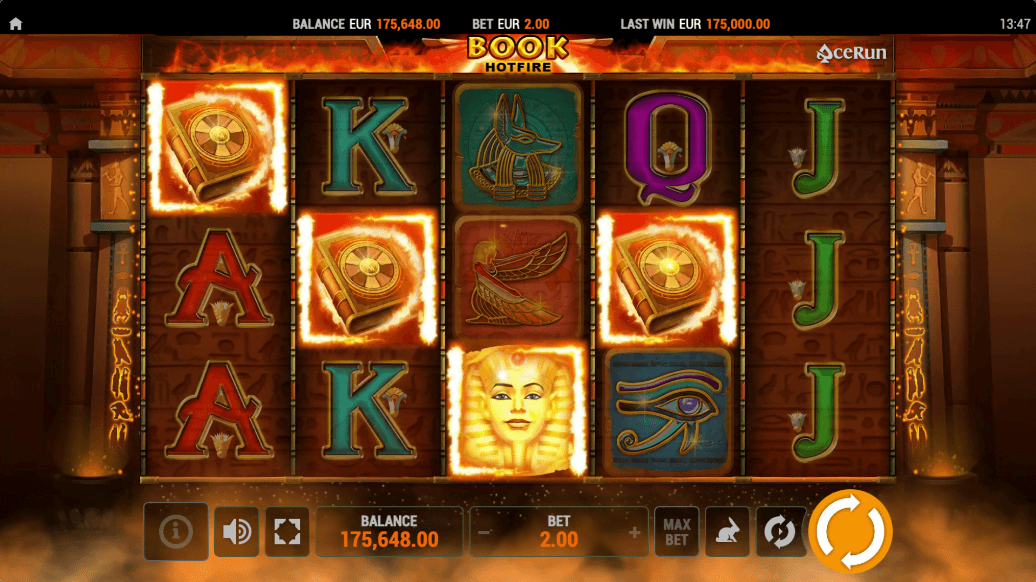 8.Book Hotfire นำเสนอกลไกคลาสสิก รวมถึงสนามเล่น 5×3 และช่องทางเดิมพันคงที่ 10 ช่องทาง ไลน์ที่ชนะทั้งหมดต้องเริ่มจากวงล้อซ้ายสุดและมีสัญลักษณ์ที่ตรงกันอย่างน้อย 3 เซลล์ที่อยู่ติดกันในทิศทางซ้ายไปขวา