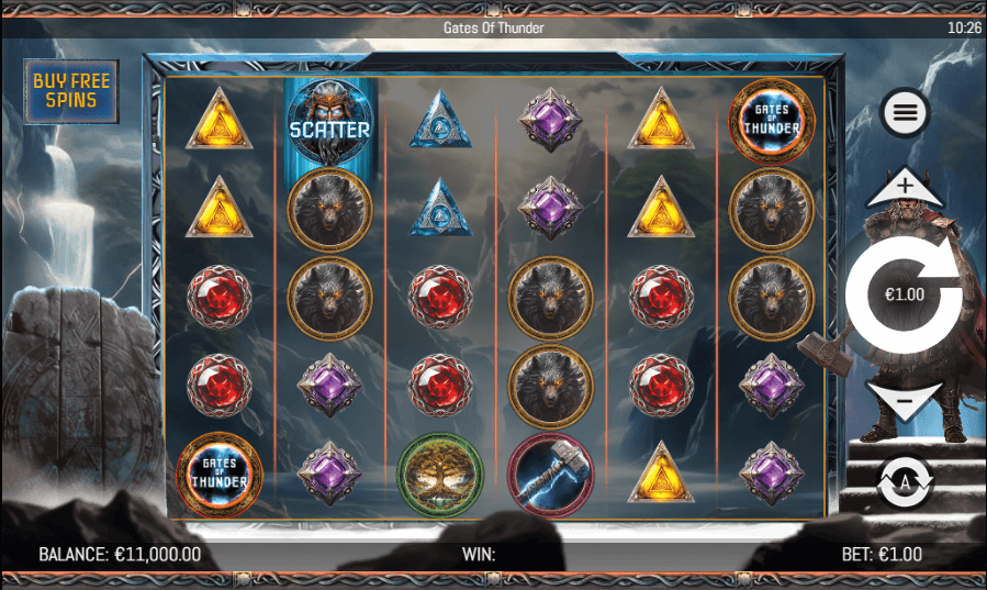 กราฟิกใน Gates of Thunder ได้รับแรงบันดาลใจจากเทพนิยายนอร์ดิก ดังนั้นนอกจากโลโก้ที่ให้ค่าตอบแทนสูงสุดแล้ว คุณจะพบรูปภาพค้อนของ Thor, Yggdrasil (ต้นไม้โบราณ) และสัตว์ร้ายบนวงล้อ สล็อต น่าเสียดายที่พวกเขาเปลี่ยนกลับเป็นสัญลักษณ์อัญมณีพื้นฐานสำหรับสัญลักษณ์ที่น้อยกว่าทั้งห้า นักรบไวกิ้งจะทำหน้าที่Scatters ขณะที่ Orbs ร่อนลงพร้อมกับตัวคูณอยู่ข้างใน